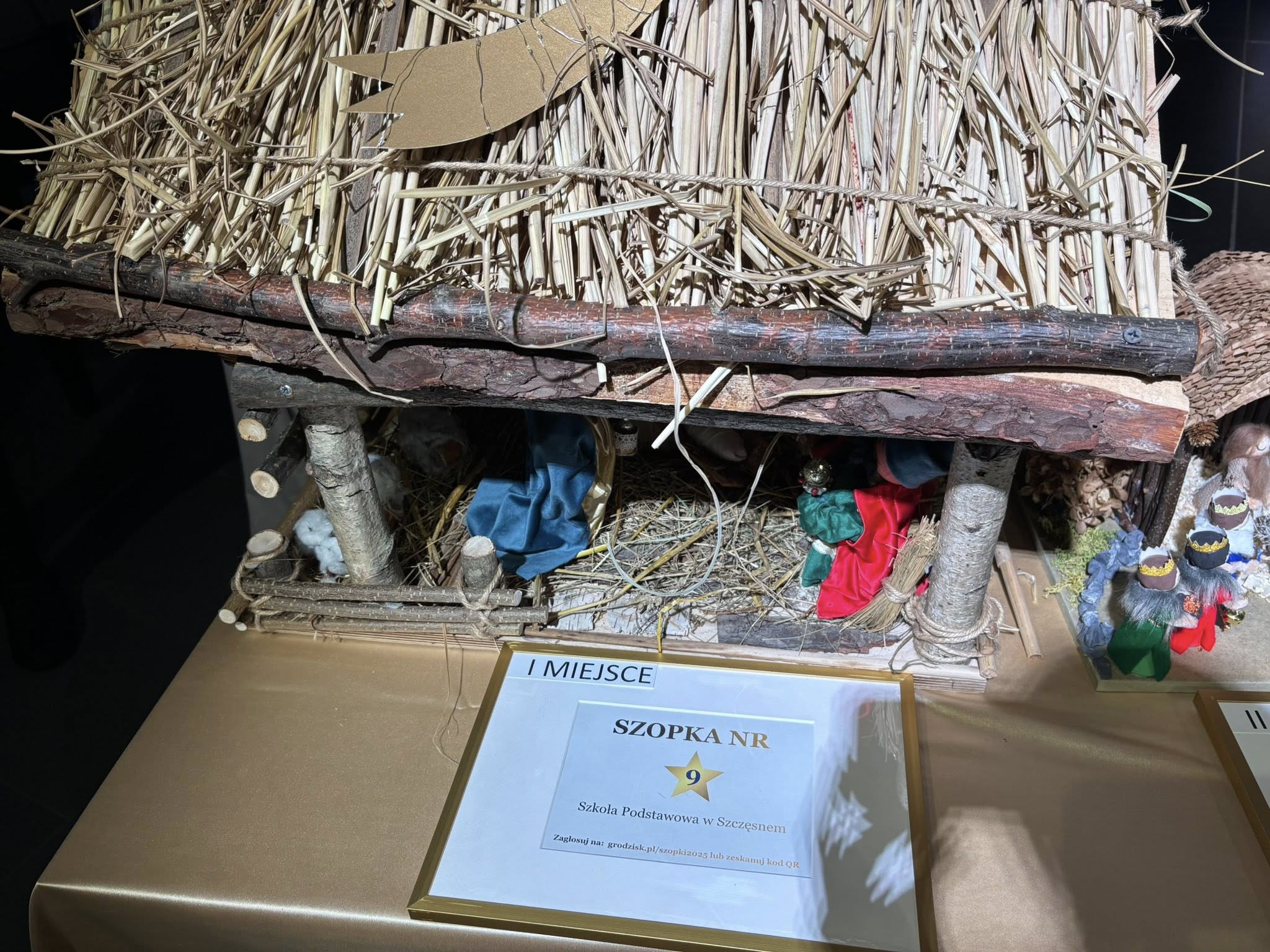 Z radością informujemy, że Grodziski konkurs na Bożonarodzeniowe Szopki został rozstrzygnięty. W głosowaniu oddano ponad 7 tysięcy głosów, co pokazuje, jak dużym zainteresowaniem cieszyło się to wydarzenie. W dniu wczorajszym miała miejsce uroczystość wręczenia nagród. W kategorii szkół podstawowych nasza szkoła zdobyła I miejsce. Zwycięska szopka została przygotowana przez społeczność