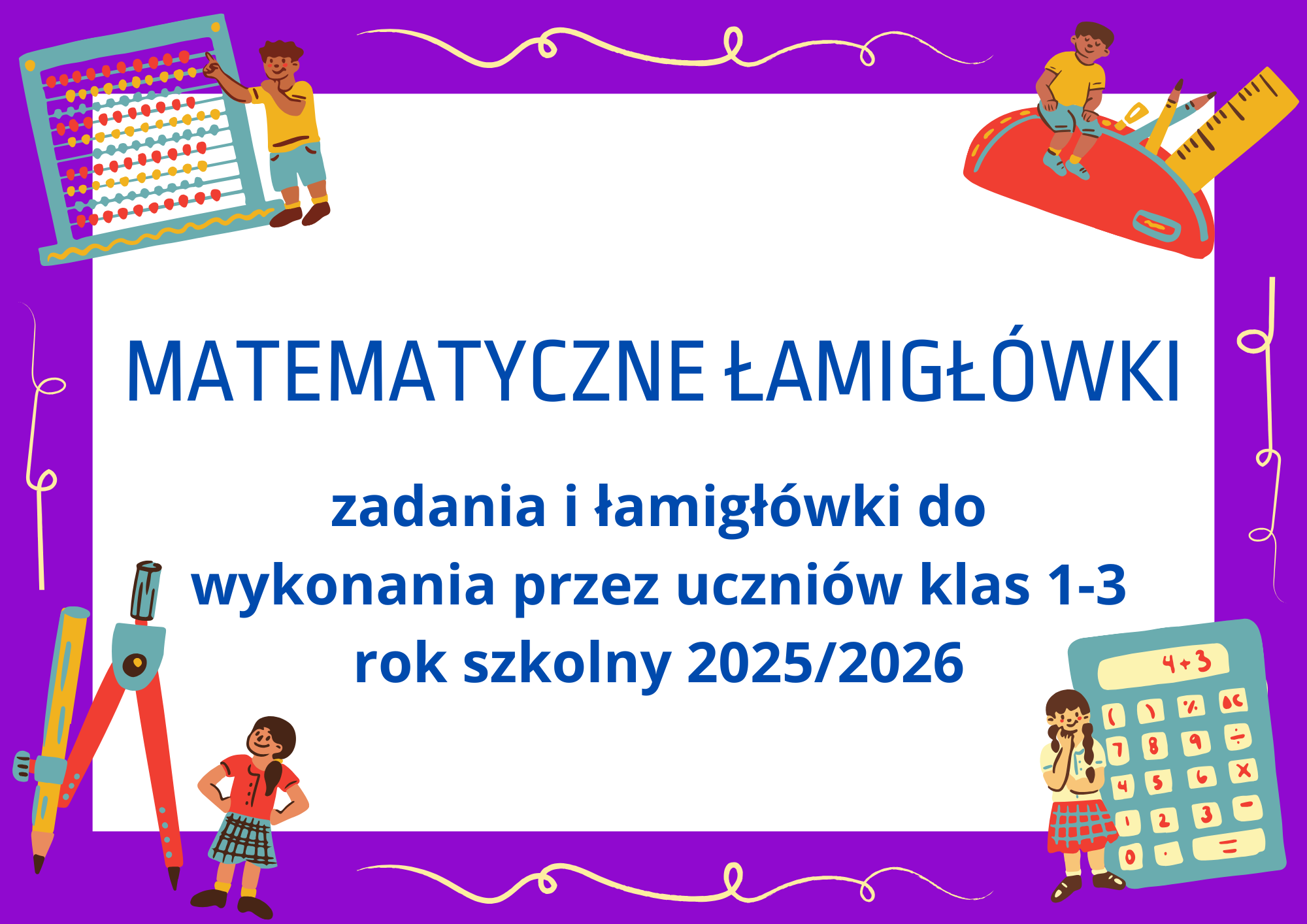 Zapraszamy uczniów klas 1–3 do udziału w matematycznej zabawie „Matematyczne łamigłówki” z okazji miesiąca marca Królowej Nauk – Matematyki W dniach 09.03 – 13.03 (od poniedziałku do piątku) każdego dnia pojawi się jedno zadanie. Wszystkie zadania będą wyłącznie wywieszane na tablicy informacyjnej na parterze, w korytarzu prowadzącym do szatni. Każde zadanie należy rozwiązać na osobnej kartce. Prosimy, aby znalazły się na niej: imię i nazwisko ucznia, klasa oraz czytelne rozwiązanie. Kartki niepodpisane, nieestetyczne lub zniszczone nie będą brane pod uwagę. Gotowe odpowiedzi należy wrzucić do pudełka umieszczonego pod tablicą z napisem „Matematyczne łamigłówki”. Zadania wraz z rozwiązaniami będą odbierane następnego dnia o godz. 16.00, co oznacza, że np. prace dotyczące zadania z poniedziałku zostaną wyjęte z pudełka we wtorek o godz. 16.00. Nie ma możliwości rozwiązywania wszystkich zadań z całego tygodnia i wrzucania ich jednorazowo do pudełka. Każde zadanie oddajemy wyłącznie w wyznaczonym terminie. Nie przyjmujemy również prac z dni, w których termin oddania już upłynął. Życzymy dzieciom dobrej zabawy i satysfakcji z rozwiązywania zadań. Agnieszka Bryła-Gmitruk Ewelina Horzempa