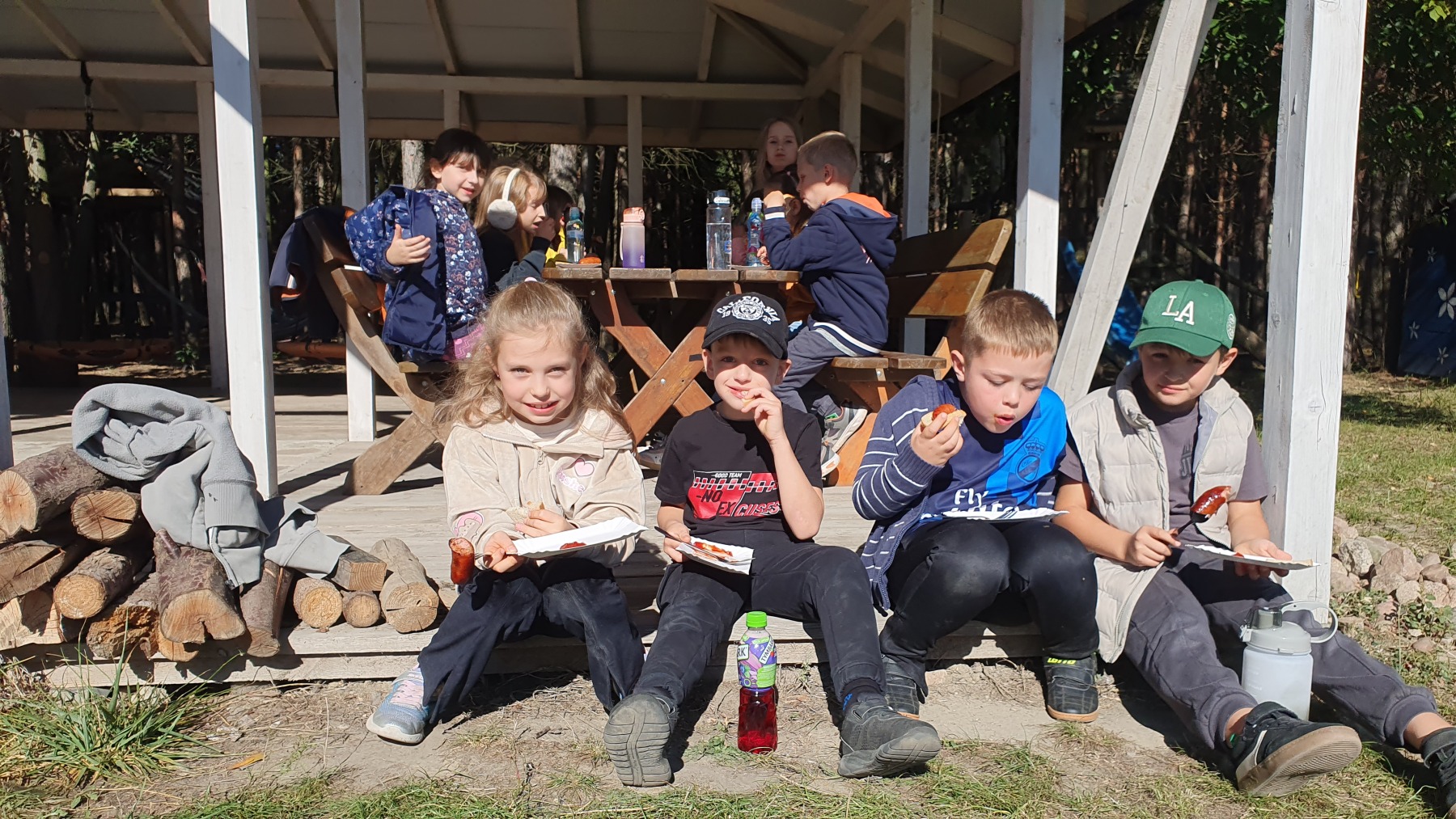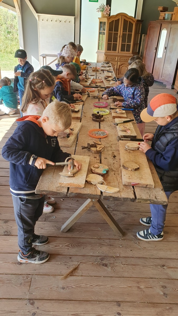 Dnia 25 września klasa 1d wybrała się na wycieczkę do Gongoliny, gdzie spędziła wyjątkowy i pełen atrakcji dzień na świeżym powietrzu. Na początku uczniowie odwiedzili zagrodę ze zwierzętami – mogli z bliska zobaczyć i obserwować różne zwierzęta gospodarskie. Kolejnym punktem programu były zajęcia techniczne. Każde dziecko wykonało własnoręcznie pracę plastyczno-techniczną – zwierzątko na deseczce. Do wykonania pracy uczniowie używali młotków, gwoździ oraz różnych ozdób. Wszyscy poradzili sobie świetnie! Dzieci miały również okazję przygotować i skosztować pysznych babeczek marchewkowych, na które samodzielnie tarły marchewki. Następnie wykonały świeży sok z marchewek i jabłek, który smakował wyśmienicie. Po zajęciach kulinarnych przyszedł czas na zabawę – dzieci bawiły się na placu zabaw, a na zakończenie wycieczki zjadły pyszne kiełbaski upieczone nad ogniskiem. Wycieczka do Gongoliny była pełna wrażeń i na długo pozostanie w pamięci uczniów klasy 1d.
