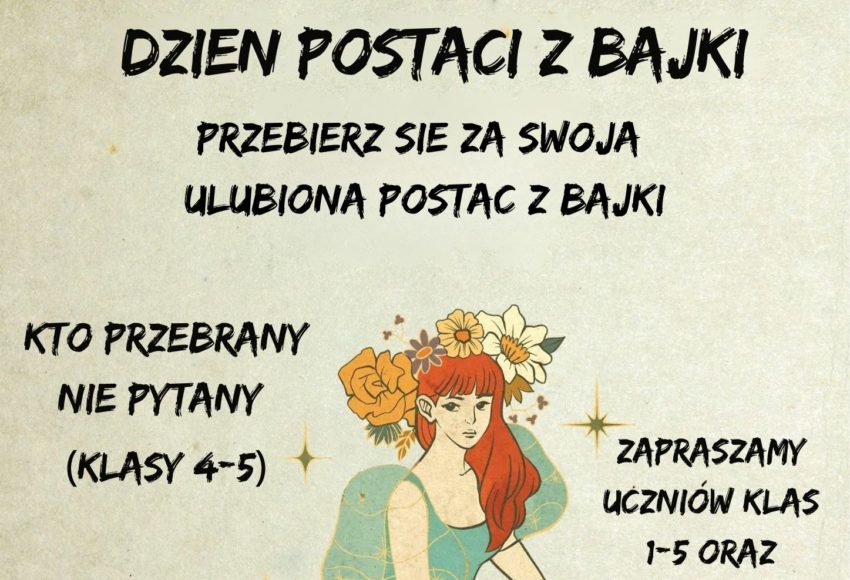 Dzień Postaci z Bajek Serdecznie zapraszamy wszystkich uczniów i nauczycieli do wspólnego świętowania Dnia Postaci z Bajek, który odbędzie się w naszej szkole 17 listopada! To wyjątkowa okazja, by przenieść się do magicznego świata bajek i wcielić się w swoich ulubionych bohaterów! Tego dnia nasza szkoła wypełni się kolorami, fantazją i dobrą […]