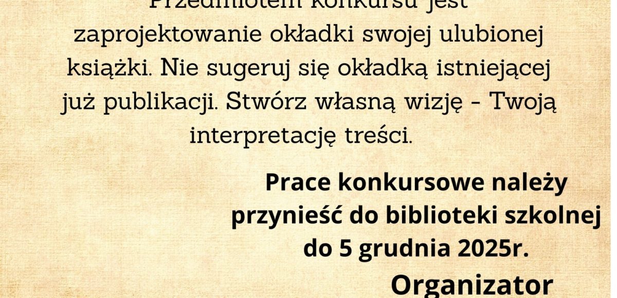 Home Aktualności 2025 listopad 18 Konkurs plastyczny „ MOJA ULUBIONA KSIĄŻKA – PROJEKT OKLADKI”
