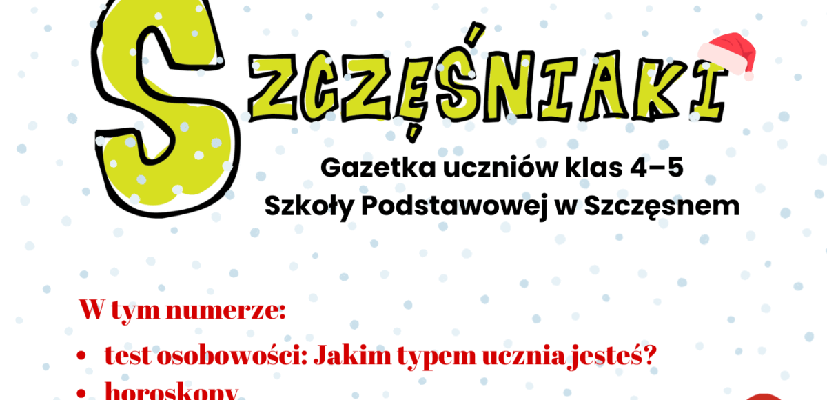 Home Aktualności 2025 grudzień 19 Drugi numer gazetki szkolnej „Szczęśniaki” już jest!