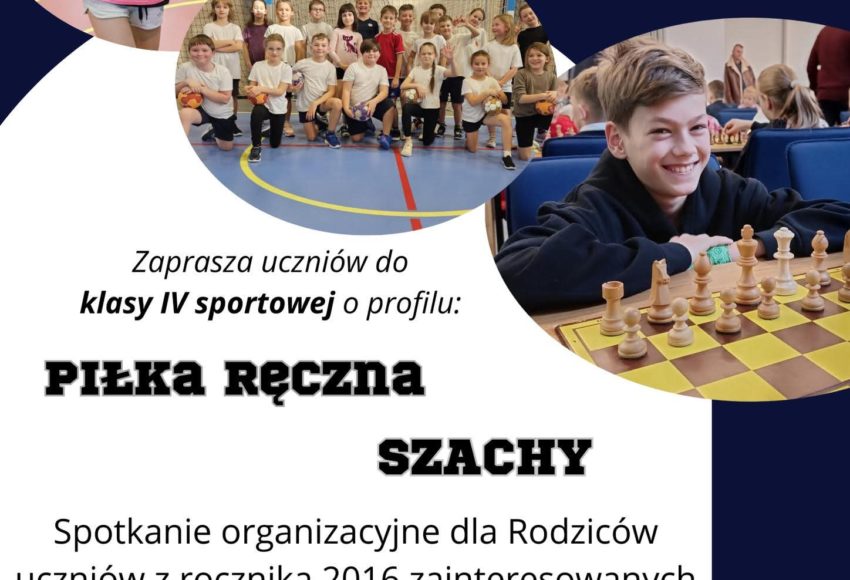 Spotkanie organizacyjne dla Rodziców uczniów z rocznika 2016 zainteresowanych przyjęciem do 4 klasy sportowej odbędzie się w dniu 25 lutego 2026r. o godz. 17.00 w stołówce szkolnej. Wszelkie informacje znajdują się na stronie szkoły w zakładce REKRUTACJA.