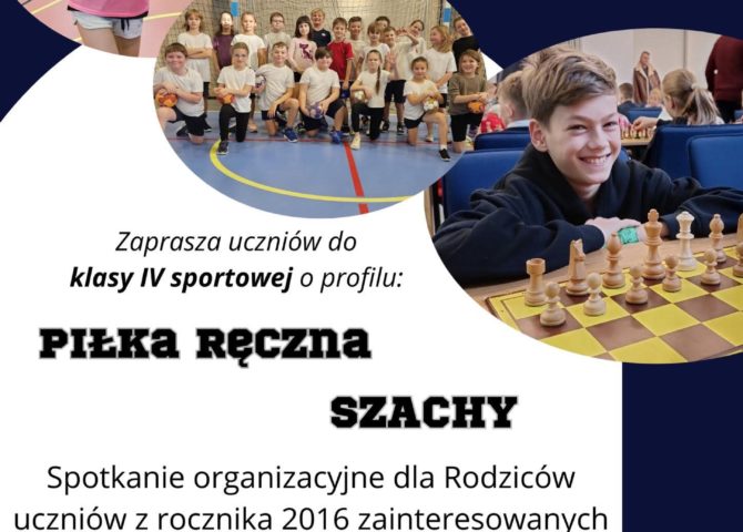 Spotkanie organizacyjne dla Rodziców uczniów z rocznika 2016 zainteresowanych przyjęciem do 4 klasy sportowej odbędzie się w dniu 25 lutego 2026r. o godz. 17.00 w stołówce szkolnej. Wszelkie informacje znajdują się na stronie szkoły w zakładce REKRUTACJA.