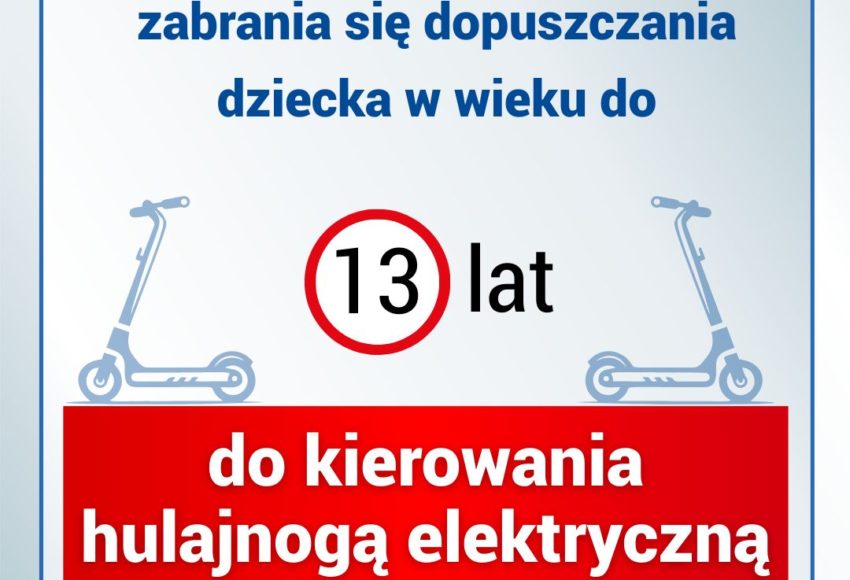 Drodzy Rodzice, od 3 marca obowiązują nowe przepisy dotyczące korzystania z hulajnóg elektrycznych. Prosimy o zapoznanie się z najważniejszymi zasadami i rozmowę z dziećmi na ten temat. Dzieci do 13. roku życia nie mogą poruszać się hulajnogą elektryczną po drogach publicznych. Wyjątek stanowi wyłącznie strefa zamieszkania i tylko pod opieką […]