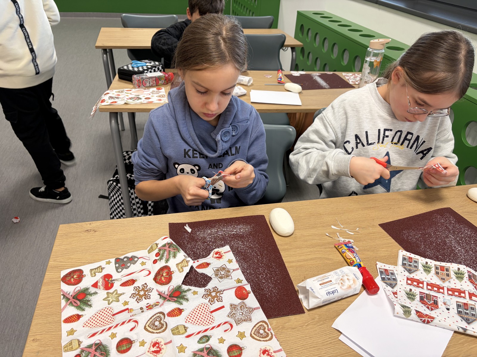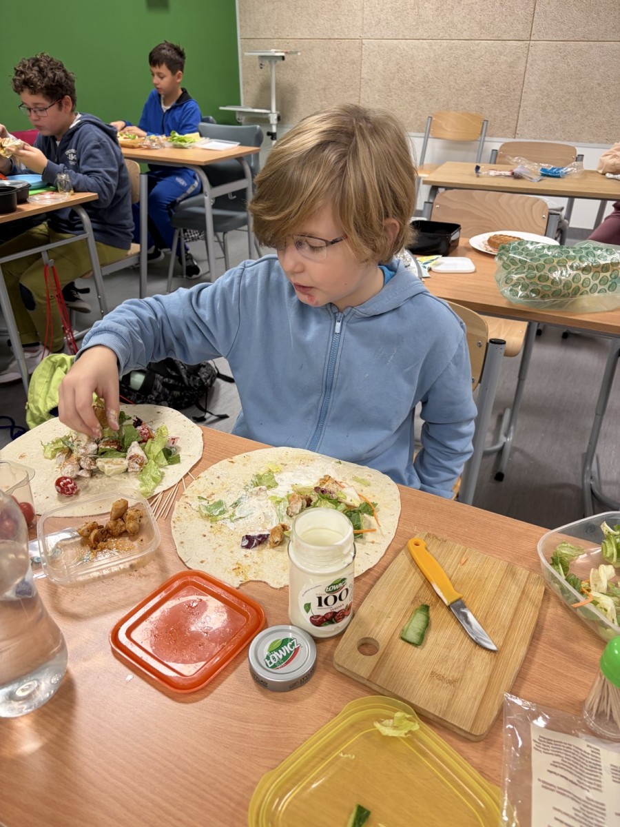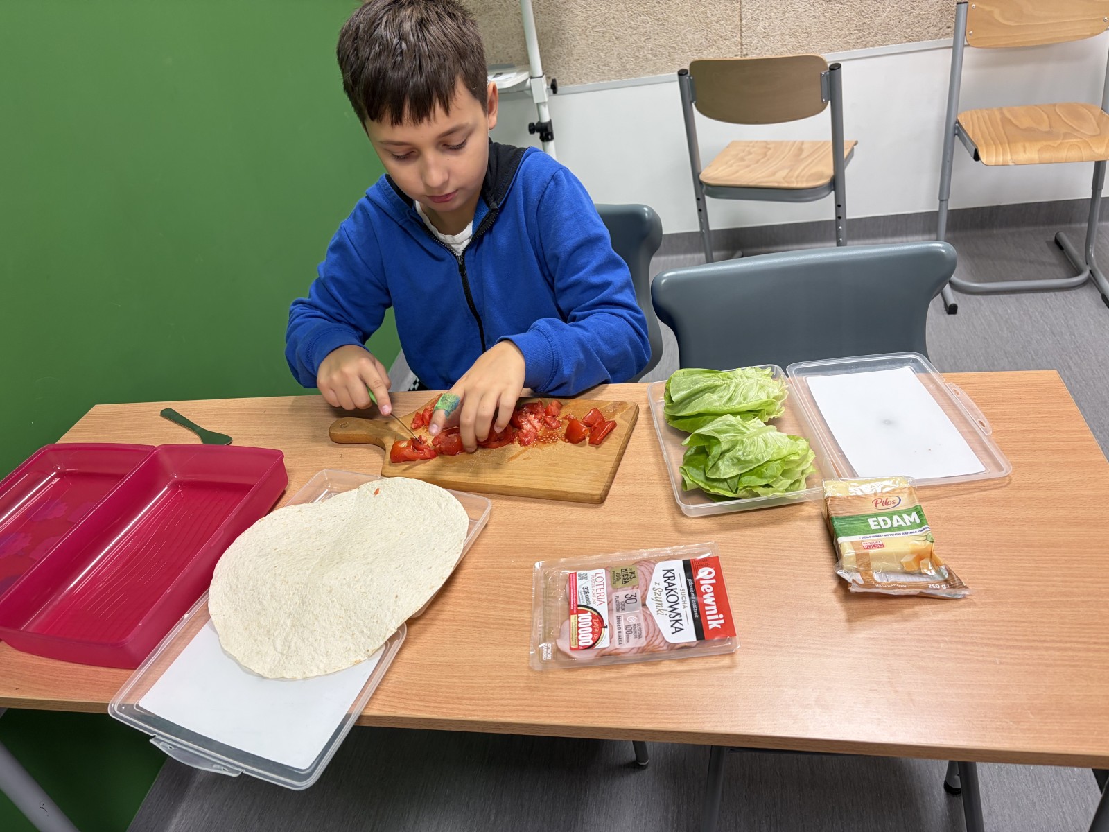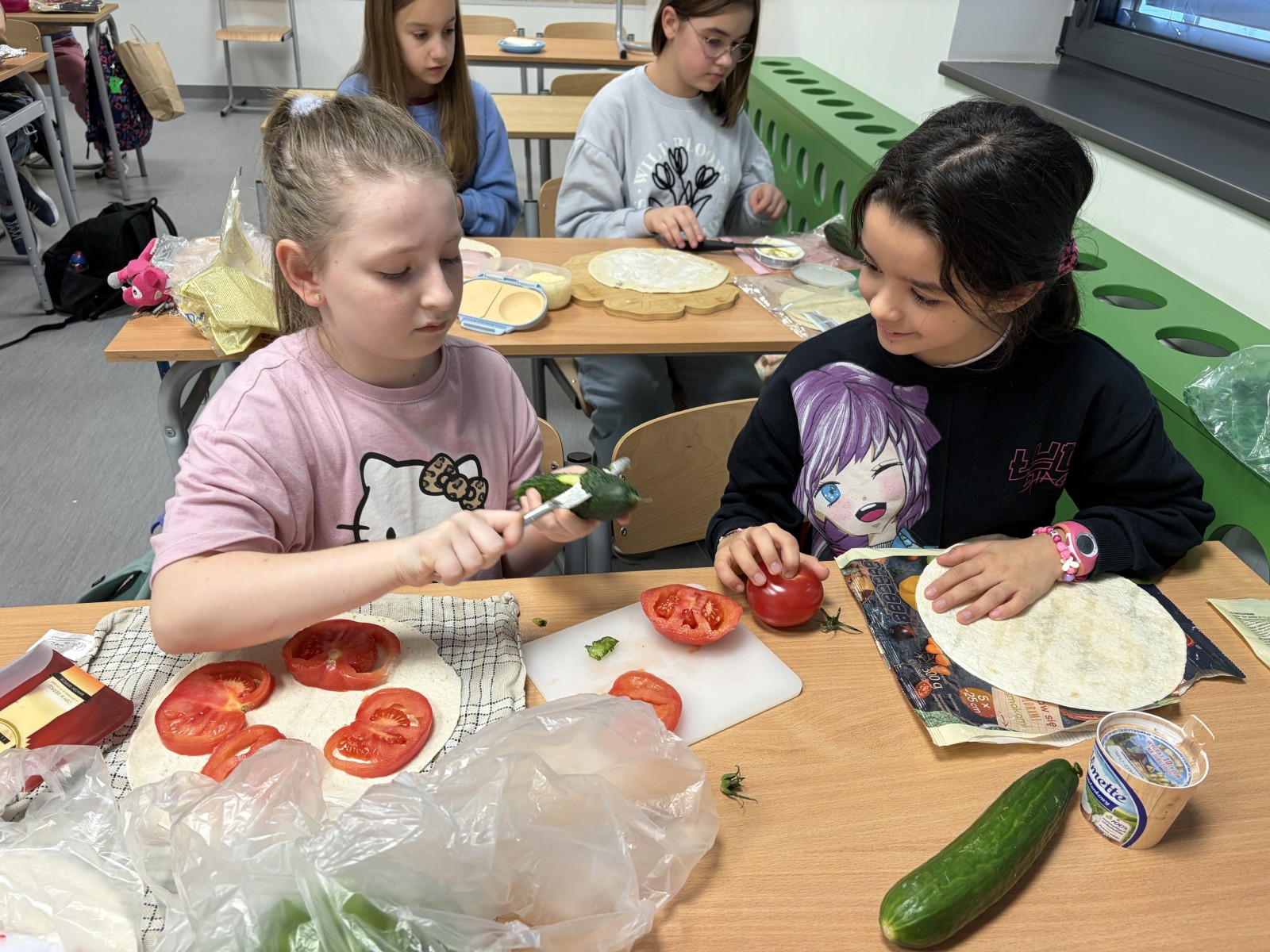 Podczas lekcji wychowawczej uczniowie klasy 4b wzięli udział w kreatywnych warsztatach, podczas których własnoręcznie wykonywali mydełka metodą decoupage. Zajęcia wymagały precyzji, cierpliwości oraz pomysłowości, a jednocześnie sprawiły dzieciom wiele radości.W listopadzie w ramach lekcji wychowawczej uczniowie klasy 4b wzięli udział w zajęciach w ramach projektu „5 porcji”, podczas których poznawali zasady zdrowego odżywiania w praktyce. Tego dnia dzieci samodzielnie przygotowywały zdrowe wrapy, pełne warzyw, kolorów i wartościowych składników.