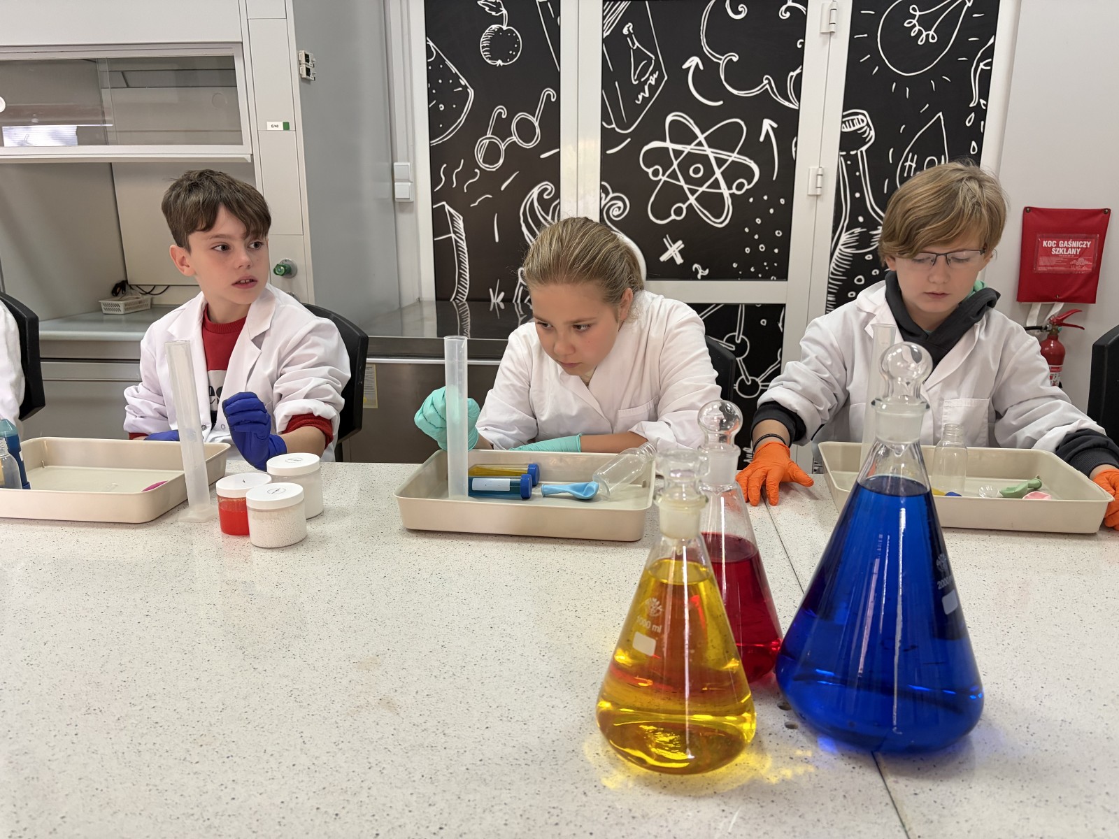 16 października klasy 4b i 5 b wybrały się na wycieczkę do Labosfery. W profesjonalnym laboratorium, nasi uczniowie wcielili się w rolę chemika, samodzielnie wykonali żelkowe robaki, slime oraz wulkan. Dodatkową atrakcją był eksperyment z suchym lodem. Zajęcia cieszyły się zainteresowaniem i sprawiły uczniom ogromną radość.