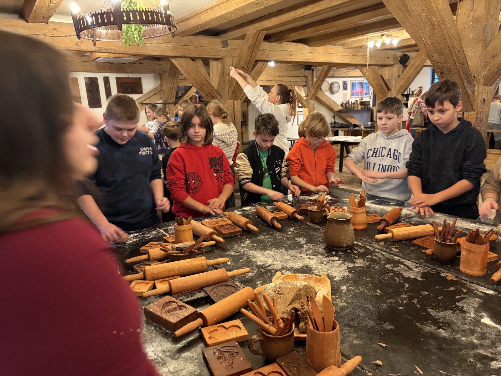 Podczas wycieczki zwiedziliśmy Muzeum Legend Toruńskich, gdzie w nowoczesny i ciekawy sposób poznaliśmy lokalne legendy. Następnie udaliśmy się do Muzeum Żywego Piernika, w którym dzieci miały okazję własnoręcznie wykonać tradycyjne toruńskie pierniki, poznając ich historię oraz tajniki wypieku.