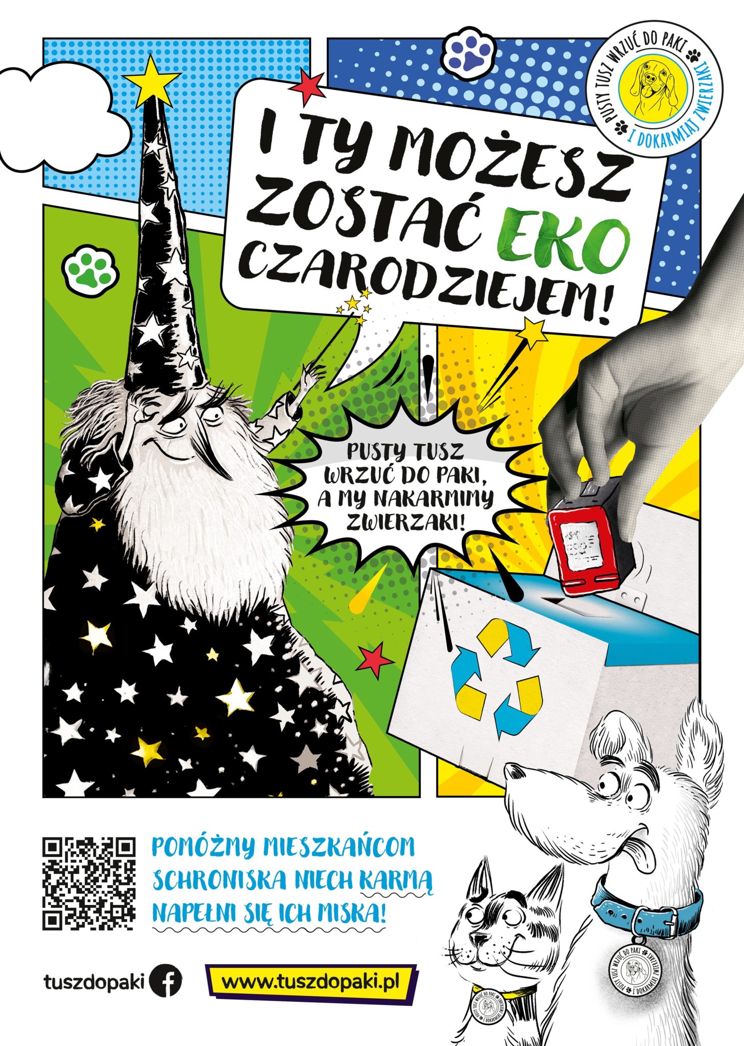 Pusty tusz wrzuć do paki i dokarmiaj zwierzaki! Ruszamy z kolejną edycją akcji edukacyjno – charytatywną „Tusz do paki”. Zachęcamy uczniów do przyniesienia z domu zużytych tuszów z drukarek atramentowych i wrzucenia ich do przygotowanych kartonów. Zebrane w ten sposób odpady przekażemy do recyklingu i zakupimy karmę dla zwierzaków ze schronisk.